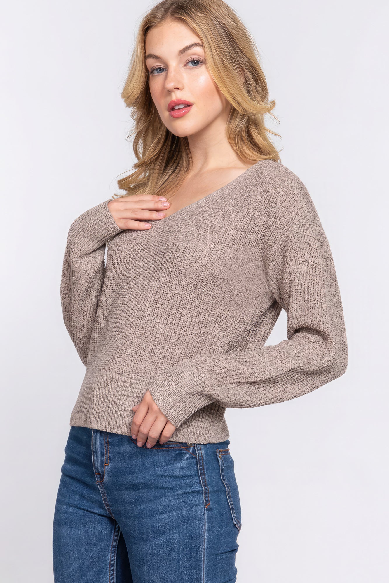 Why Choose the Dolman Long Sleeve V-Neck Strappy Open Back Sweater?