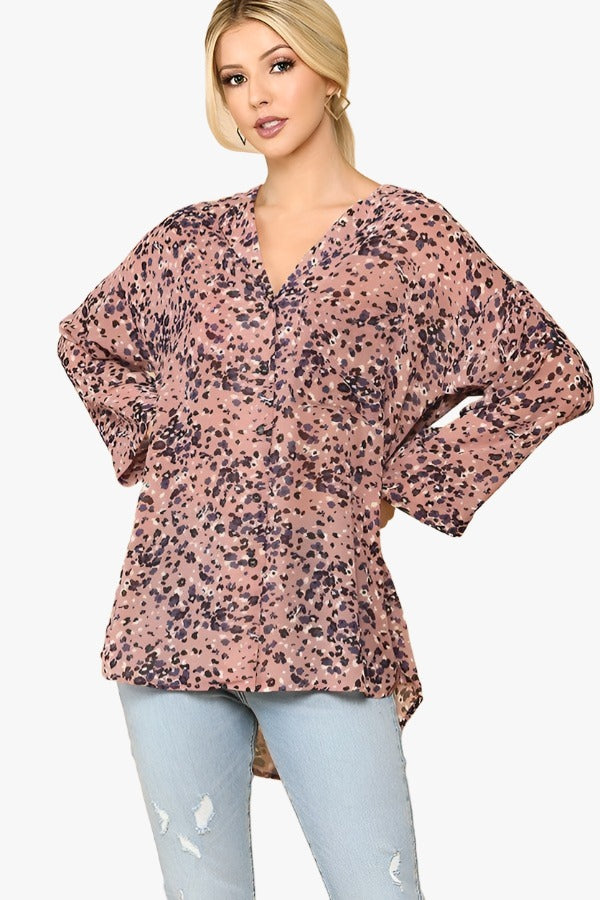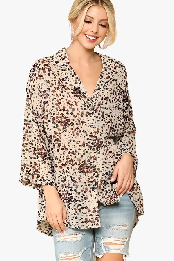 Add the Animal Print Button Down Lapel Collar Shirt in Golden Mix to your cart now and elevate your style with this chic and comfortable piece!
