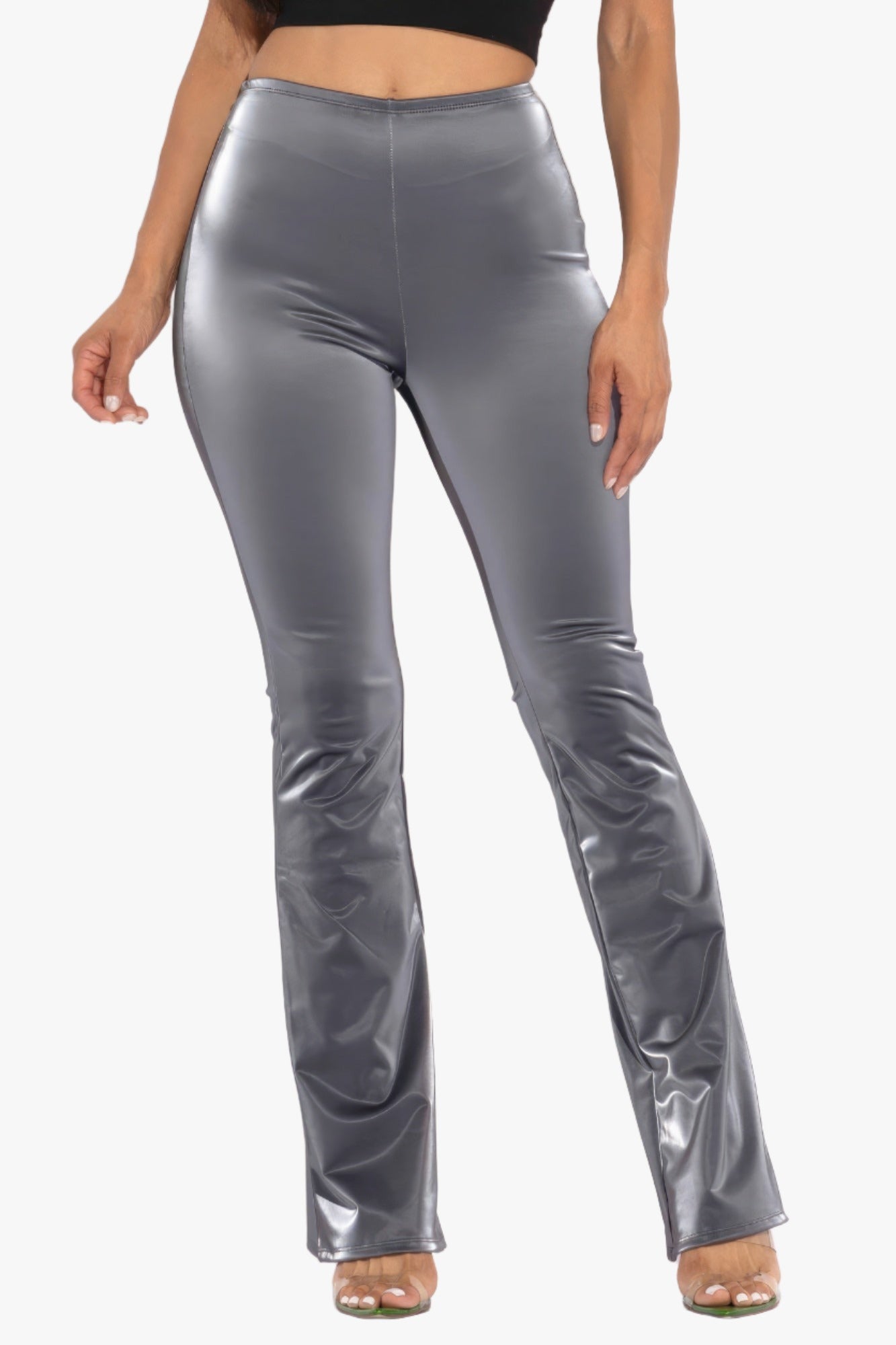 1. Fabric: Immerse yourself in the luxurious feel of our Velvet PU Flared Pants, crafted from a blend of 95% Polyester and 5% Spandex for the perfect balance of comfort and style.