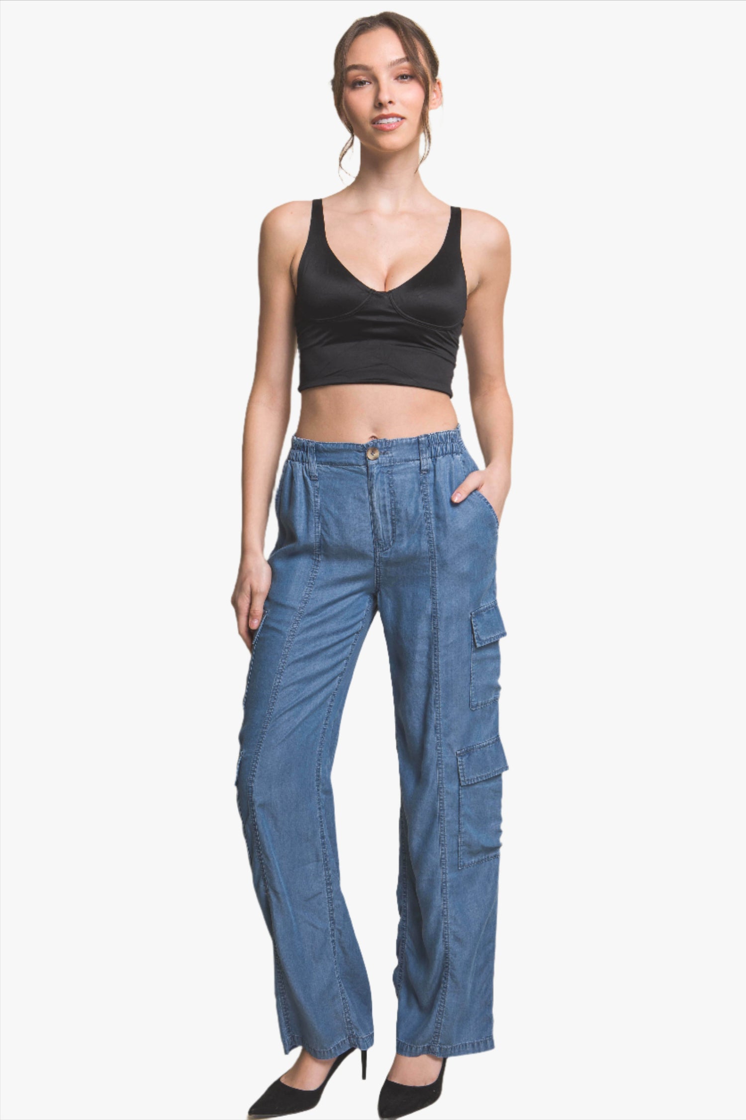 Elevate your style with our Full-Length Tencel Pants with Cargo Pockets in stunning Blue. Shop now and experience comfort and style in one chic piece!