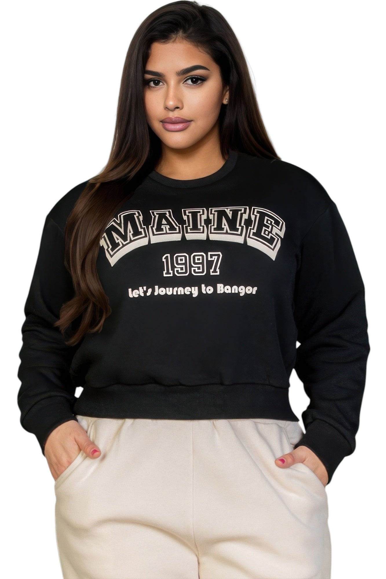 Introducing the Plus Size Graphic Drop Shoulder Sweatshirt, designed for both comfort and style. Made with very soft, stretchy fabric, this sweatshirt offers a relaxed fit with drop shoulders and a bold "Maine" graphic. Perfect for layering during the fall and winter months, It's ideal for various occasions, from casual outings to lounging at home.
