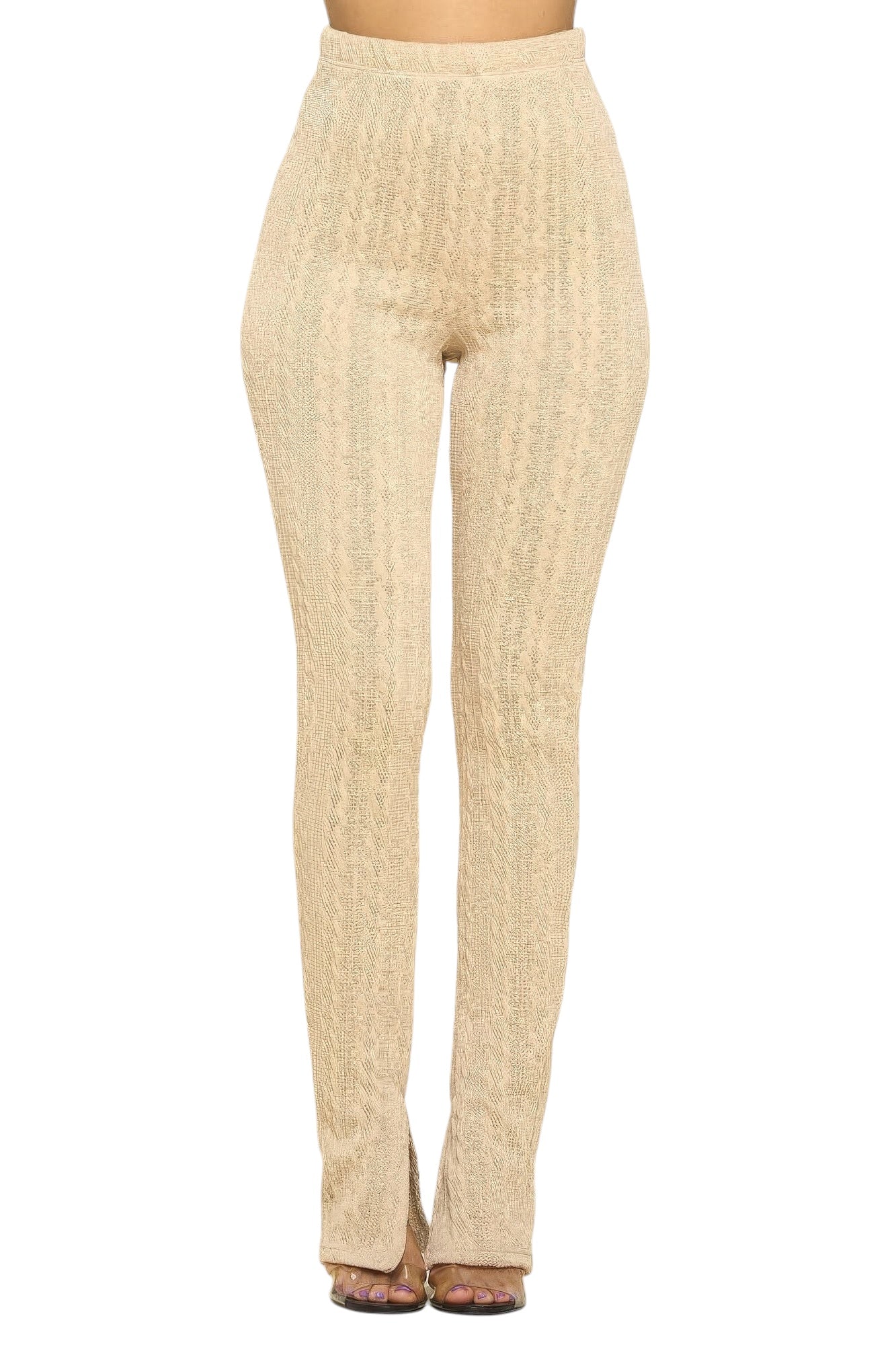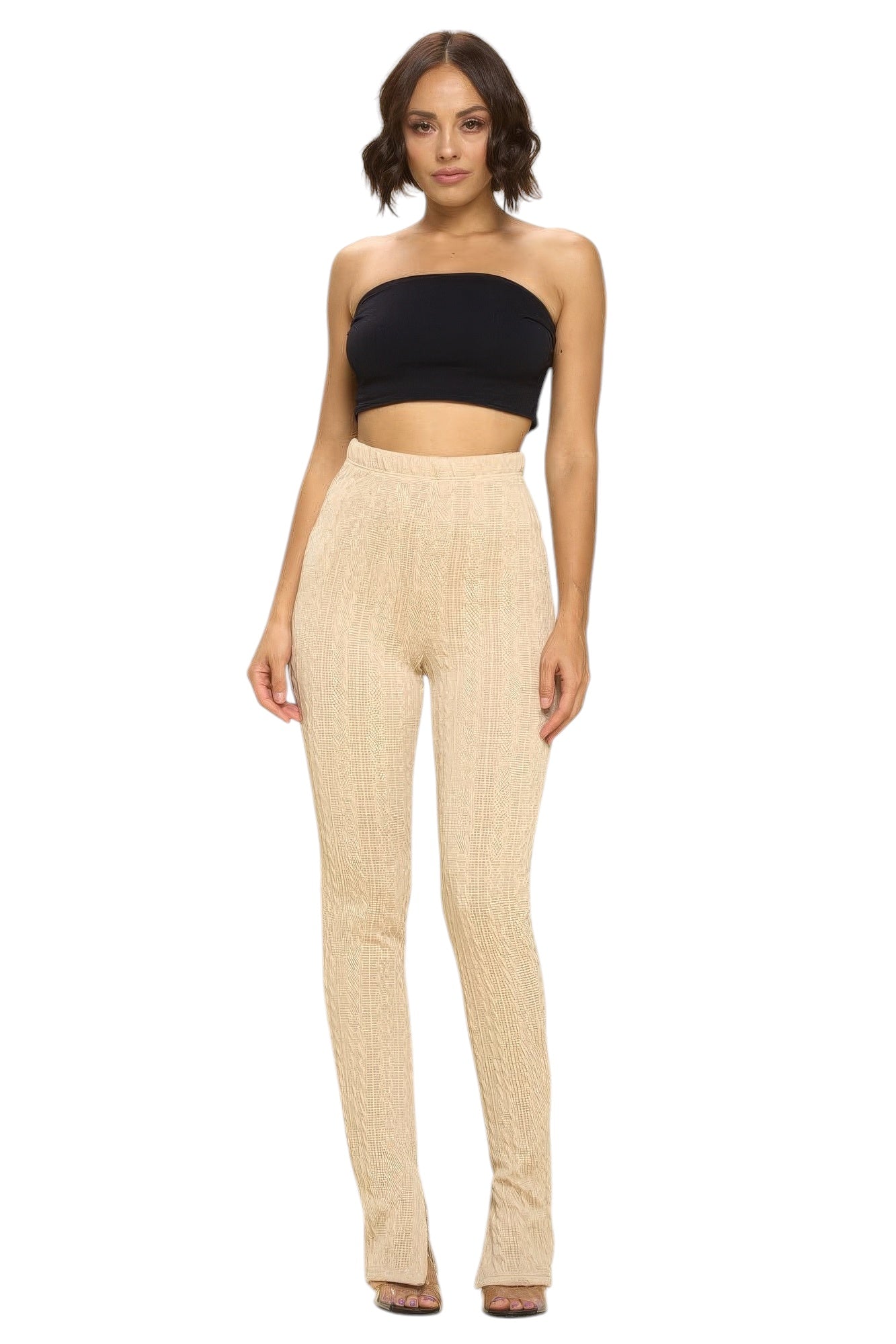 Enhance your wardrobe with our Knit High Rise Leggings, a comfortable and stylish choice available in sizes Small (S), Medium (M), and Large (L). Meticulously crafted, these leggings feature a solid knit design, a flattering high rise fit, and a unique slit hem detail for a touch of sophistication.